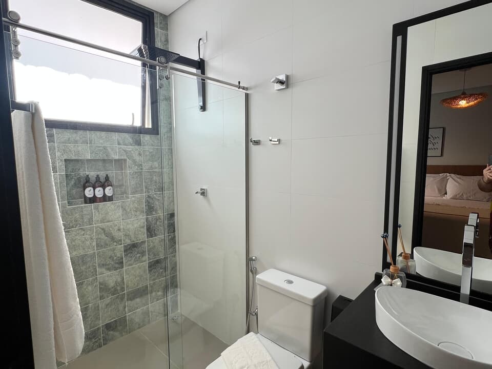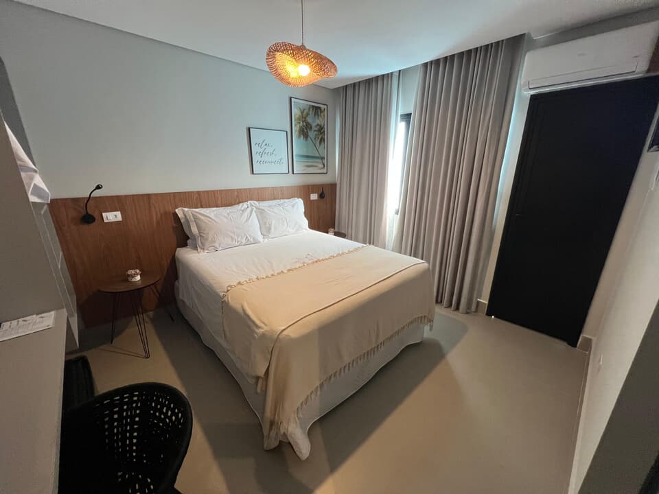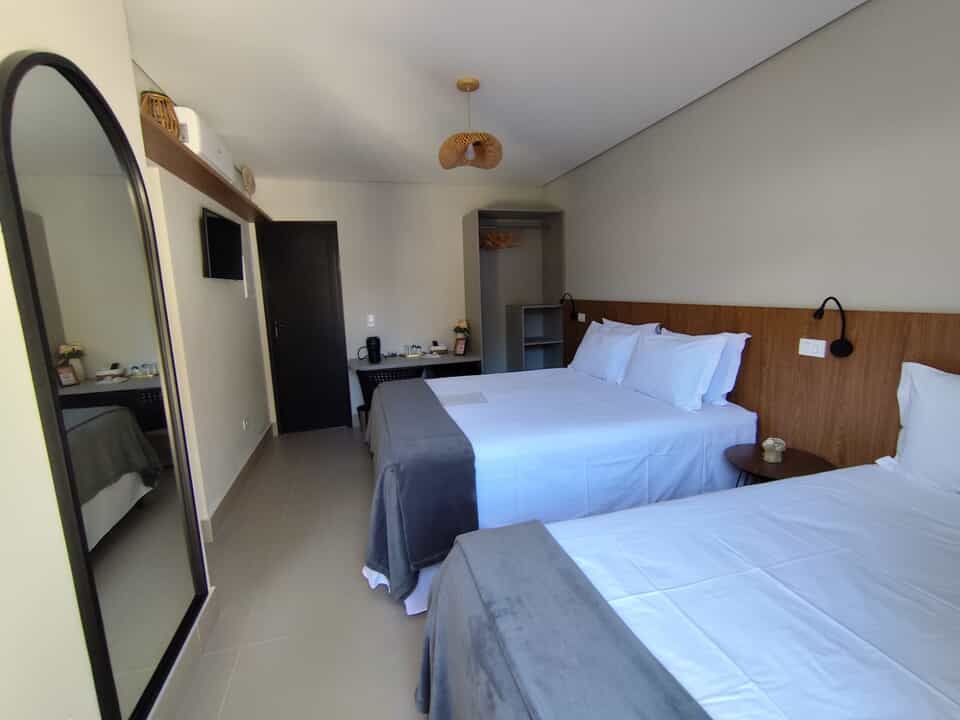 Acomodação comporta até 03 hóspedes, possuí uma cama de casal queen size e uma cama de box solteiro. Possui ar-condicionado, banheiro privativo, televisão e wi-fi.