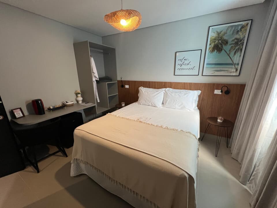 Acomodação comporta até 02 hóspedes em uma cama de casal queen size. Possui ar-condicionado, banheiro privativo, televisão e wi-fi.